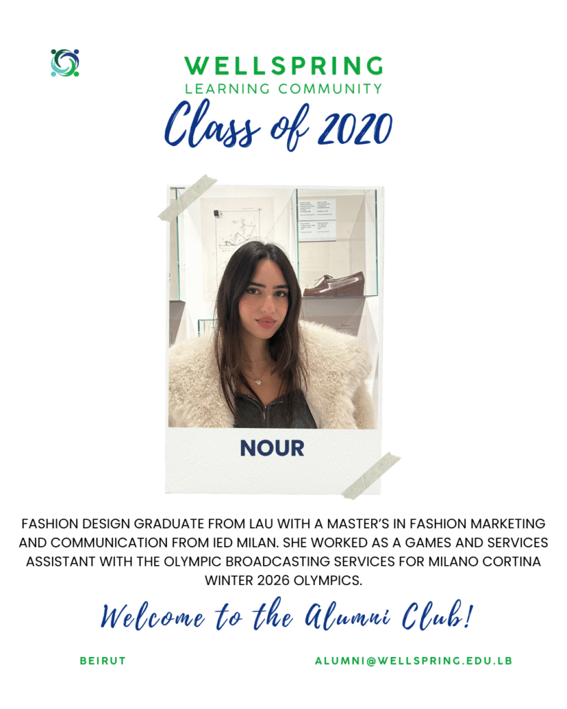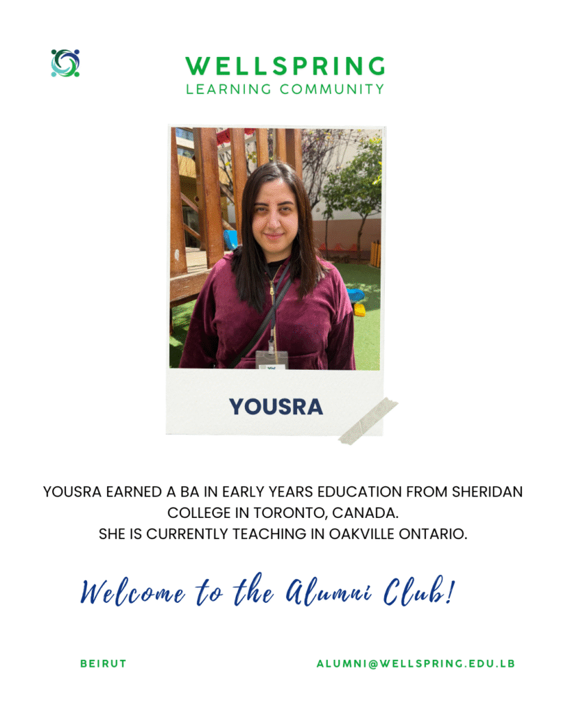 As Wellspring is an IB International school, we expect many of our students and their families to leave Lebanon before Grade 12; yet those students are not excluded from being considered as part of Wellspring’s Alumni Group.
